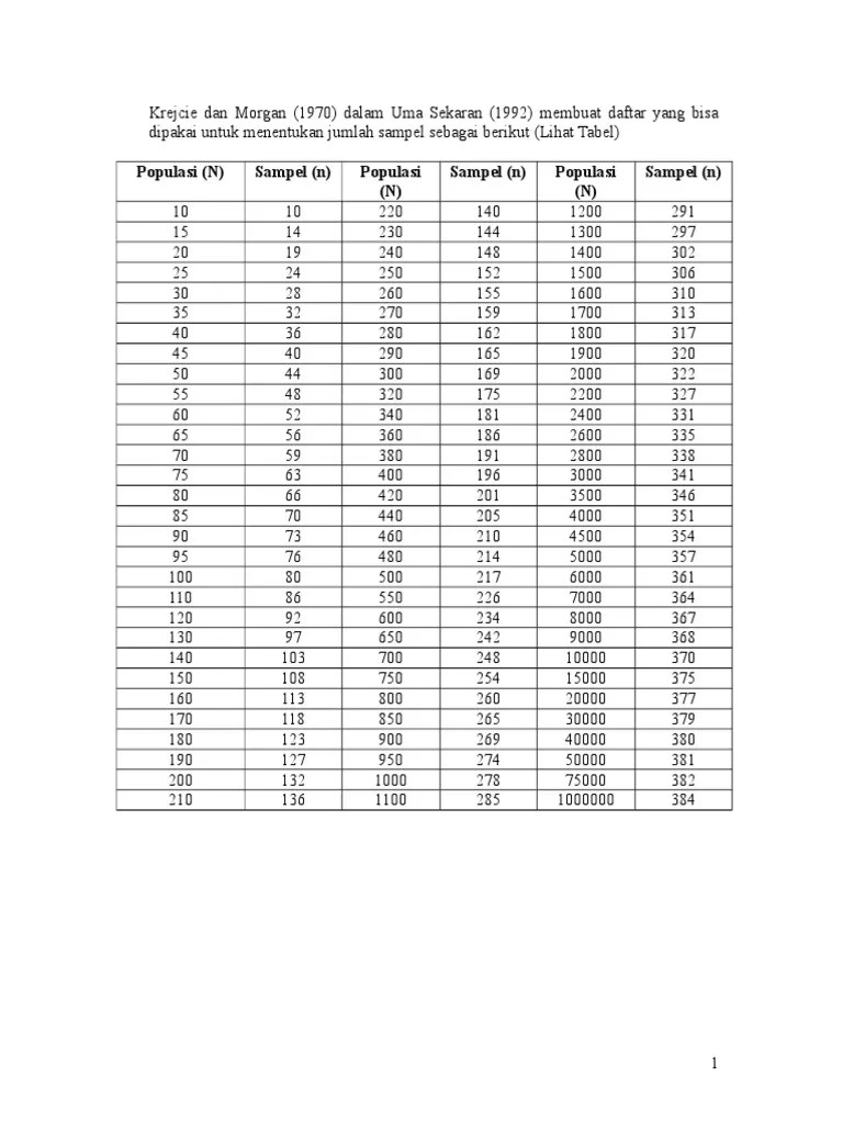 To address the existing gap, krejcie & morgan (1970) came up with a table for determining sample size for a given population for easy .